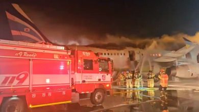 آتش سوزی در هواپیمای مسافربری کره جنوبی + فیلم