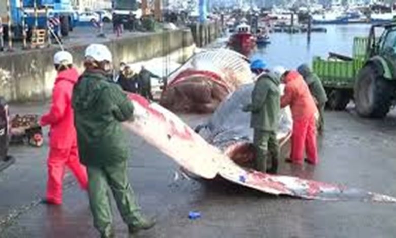 خروج لاشه نهنگ ۲۱ متری از آب‌های ساحلی اسپانیا + فیلم
